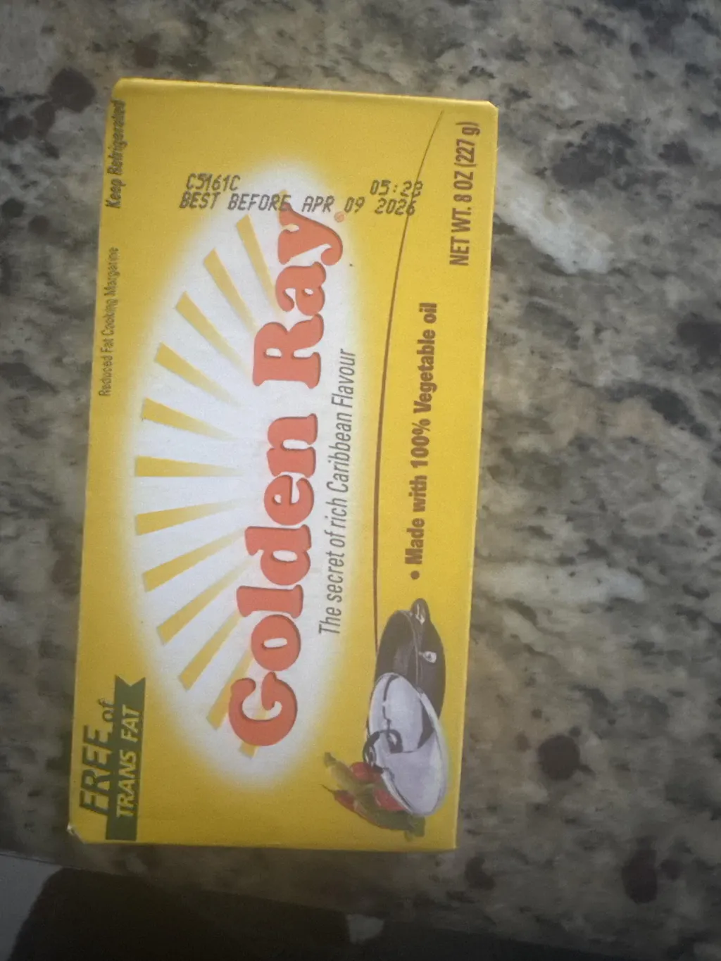 Indulge in the rich, buttery taste of Golden Ray margarine. Made from high-quality ingredients, this 8 oz spread adds a delicious touch to your favorite dishes. Enjoy the benefits of its smooth texture and versatile flavor in every bite. Elevate your meals with Golden Ray margarine today!
