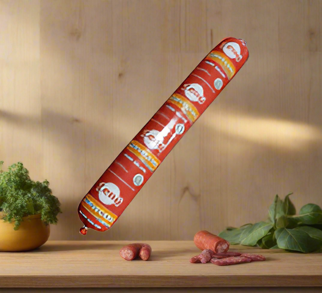 Known for its smoky aroma and delicious seasoning, Salchichón Cervecero is a staple in Colombian kitchens — perfect for breakfast with arepas, snack platters, or family gatherings. This larger 2.5 lb presentation is ideal for sharing and preparing multiple meals.